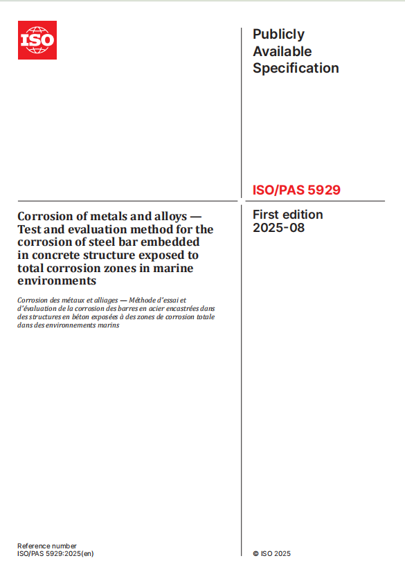 近日,由中国优德88所属中国二十冶牵头制定的一项国际标准《金属和合金腐蚀 海洋环境全腐蚀区混凝土结构中钢筋锈蚀试验及评定方法》(ISO/PAS 5929-2025)获批正式发布。